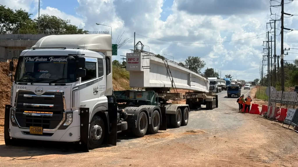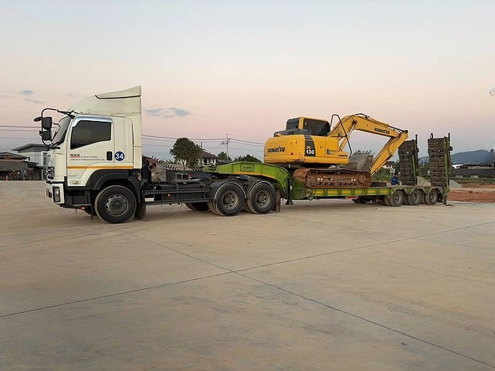 - ขนย้ายเครื่องจักรกลหนัก: รถโฟร์คลิฟท์, รถตัก, รถขุด, รถแม็คโคร โดยใช้รถเทรลเลอร์พื้นเรียบ/โลวเบท (2-6 เพลา).